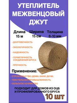 Утеплитель межвенцовый джут толщина 8-10мм ширина 15см 10шт