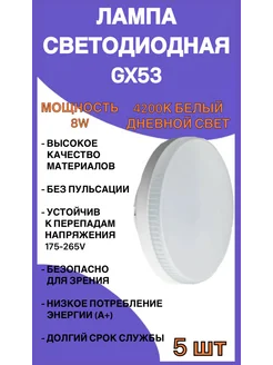 Светодиодные лампочки GX53 8Вт 4200К, 5шт