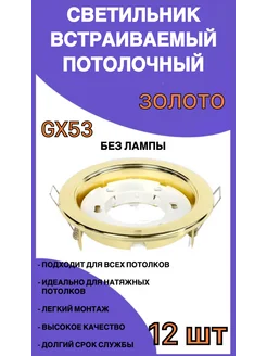 Светильник потолочный встраиваемый GX53 ЗОЛОТО, 12шт