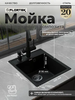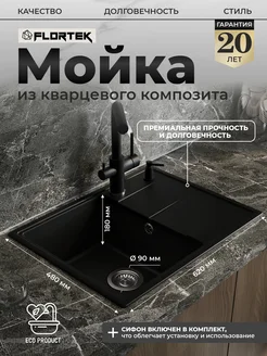 Мойка для кухни каменная из кварца 42х48, Riley 420 Night