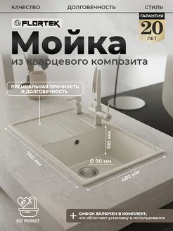 Мойка для кухни каменная из кварца 74х48, Riley 740 Moon