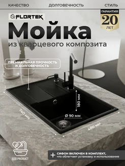 Мойка для кухни каменная из кварца 74х48, Riley 740 Night