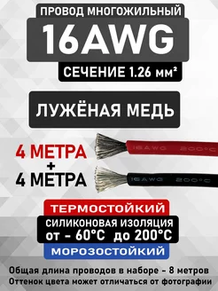 Провод 16AWG сечение 1.26 мм² - 2 цвета по 4 метра