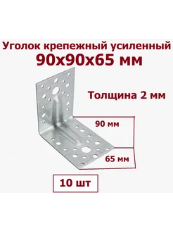 Уголок крепежный усиленный 90х90х65х2 0мм - 10 шт