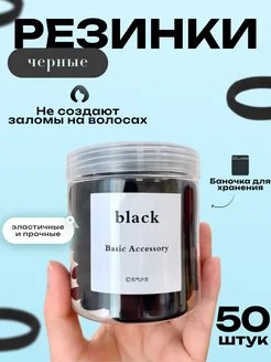 Резинки для волос черные, женские подарочный набор 50 шт