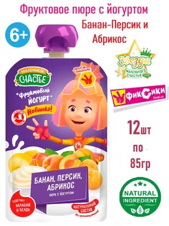 Фруктовое пюре с йогуртом банан, персик и абрикос с 6 мес