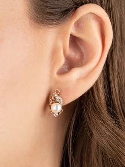 Серьги с жемчугом медицинский сплав под золото бижутерия