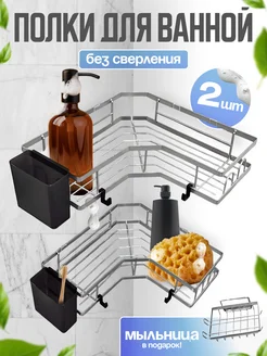 Полка в ванную угловая самоклеящаяся 2 ярусная + мыльница