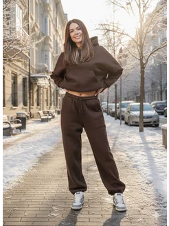 Костюм спортивный однотонный утепленный на молнии c начесом