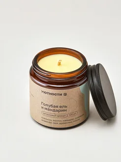 Свеча ароматическая в черной банке Голубая ель и мандарин