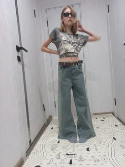 Джинсы палаццо подростковые на резинке со стразами