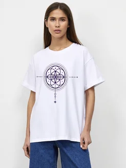 Футболка-амулет с принтом Цветок Жизни и аффирмациями