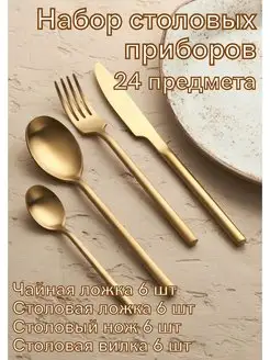 Набор столовых приборов 24 предмета Саппоро бейсик золотой