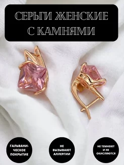 Серьги с камнем бижутерия под золото гальваническое покрытие