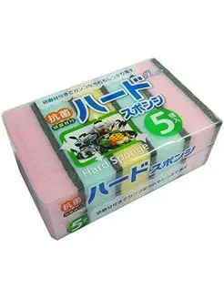 Губка для мытья посуды с абразивным слоем жесткая 5шт