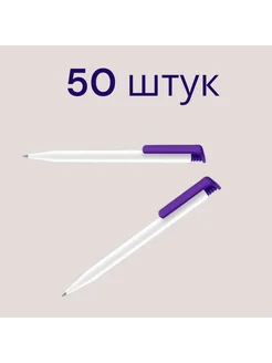 Ручка автоматическая шариковая белая с фиолетовым 50 шт