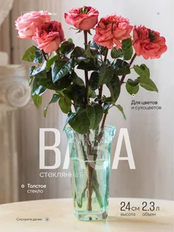 Ваза для цветов, сухоцветов стеклянная большая 24 см