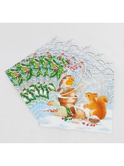 Новогодние салфетки "Лесные друзья"3сл,33x33см