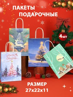 Подарочные новогодние крафт пакеты, набор 4 шт