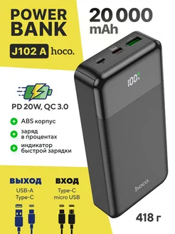 Powerbank 20000 mAh с быстрой зарядкой для iPhone и Android