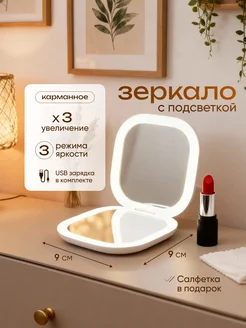 Зеркало с подсветкой для макияжа складное