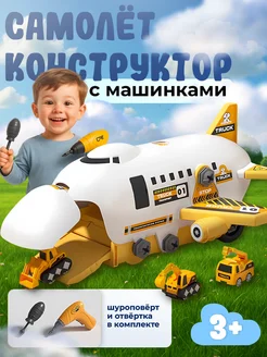 Самолет-конструктор с машинками отверткой и шуруповертом