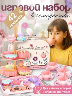 Игровой набор чаепитие еда и посуда с чайным сервизом