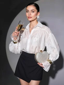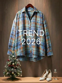 Рубашка в клетку оверсайз с леопардовыми воланами
