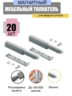 Толкатель мебельный узкий демпфер для фасада с магнитом шт20