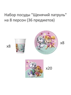 Набор бумажной посуды на 8 персон. Щенячий патруль