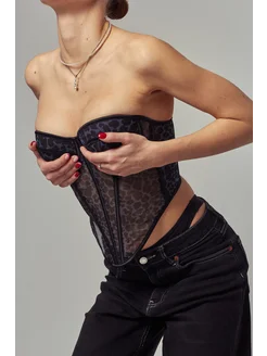 Корсет вечерний с чашками леопардовый