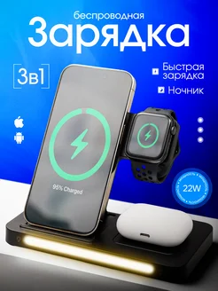 Беспроводная зарядка для Iphone Android 3в1 с ночником