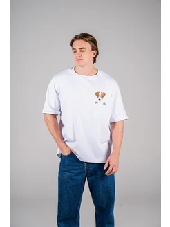 Футболка белая с вышивкой джек рассел