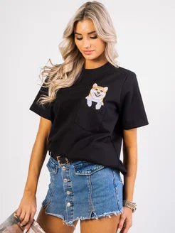 Футболка черная оверсайз с вышивкой Сиба ину