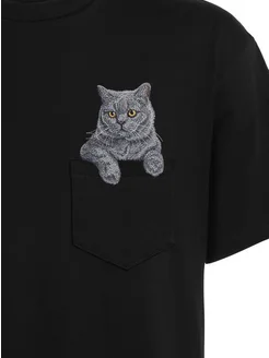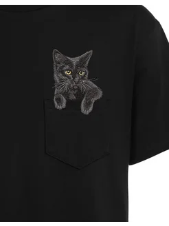 Футболка черная оверсайз с вышивкой Чёрный кот