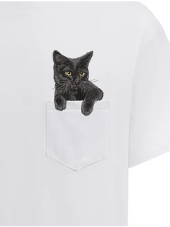 Футболка белая оверсайз с вышивкой Чёрный кот
