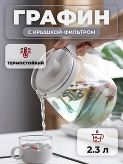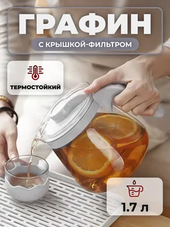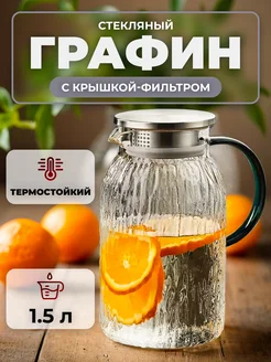 Графин для напитков стеклянный с фильтр крышкой