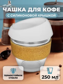 Стакан для кофе стеклянный с крышкой и держателем