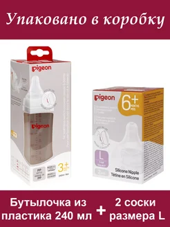 Бутылочка для кормления 3+ мес, РР, 240 мл + 2соски размерL