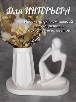 Ваза для сухоцветов мини интерьерный набор из белого гипса