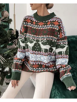Свитер оверсайз вязаный Новогодний