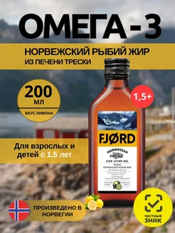 Омега-3 Норвежский рыбий жир жидкий, лимон, 200мл