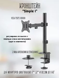 Кронштейн Simple I для мониторов 17"-32" до 9 кг, черный