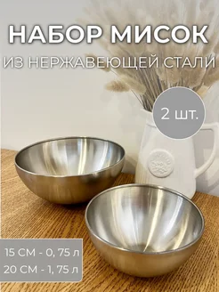 Набор серебряных мисок из нержавейки - диаметры 15 и 20 см