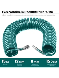 Воздушный спиральный шланг с фитингами 15м, 8x12мм, 15 бар