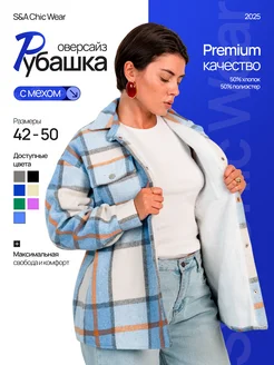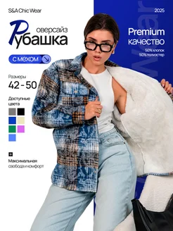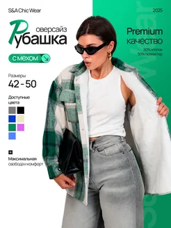 Рубашка в клетку оверсайз удлиненная теплая