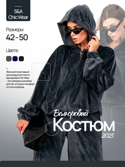 Спортивный велюровый костюм с капюшоном