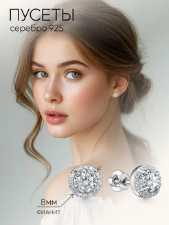 Серьги пусеты серебро 925 с гранатом позолота 585