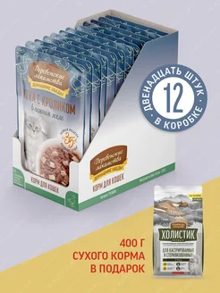 Влажный корм для кошек "Утка с кроликом", паучи, 12 шт