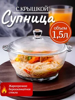Кастрюля стеклянная термостойкая с крышкой 1,5 л